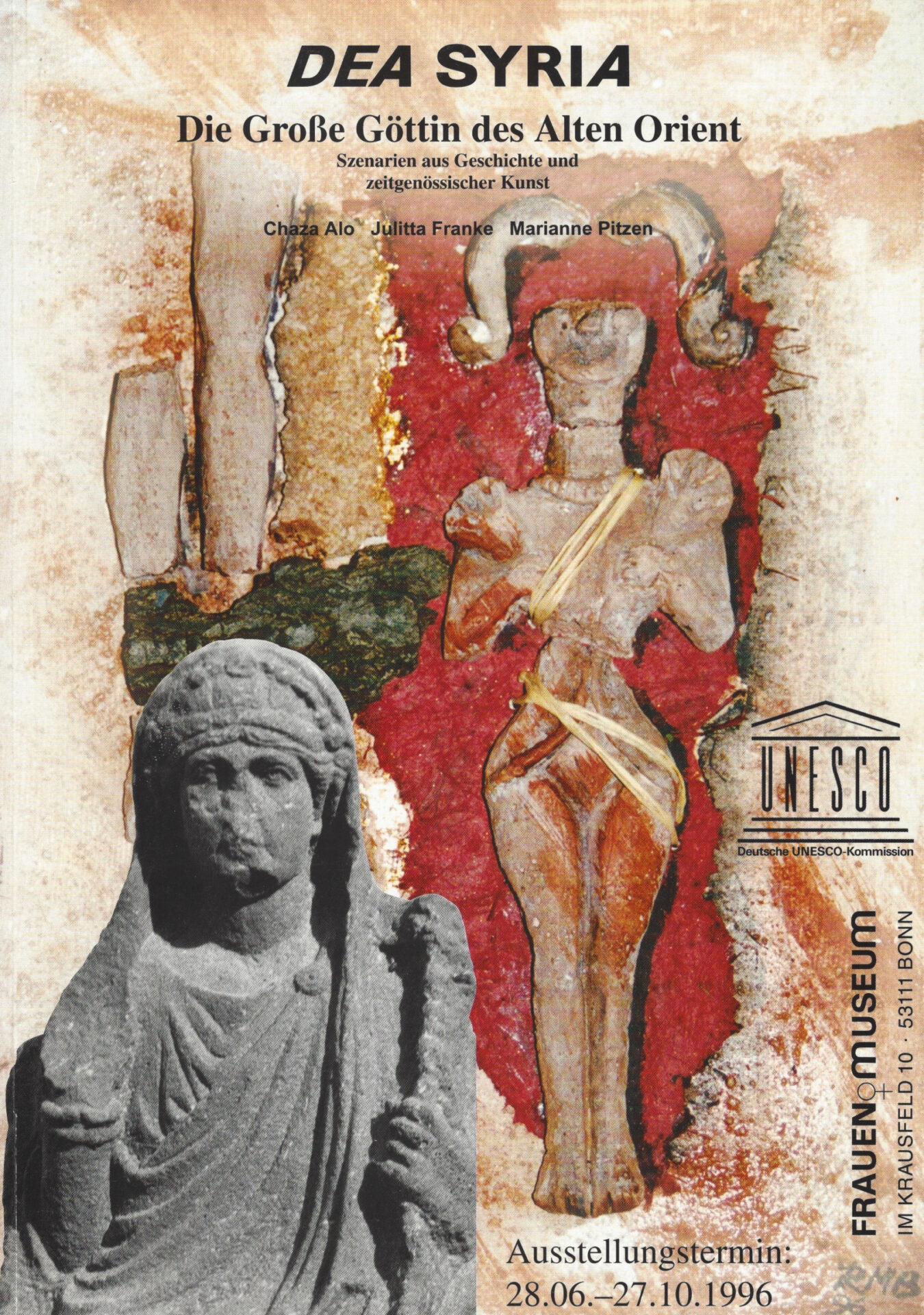 Der Katalog zeigt wie in dieser Ausstellung historische Dimension und zeitgenössische Kunst aus Westeuropa und dem Nahen Osten zusammen kamen. Ziel des Modellprojektes zum Thema DEA SYRIA war ein echter Austausch zwischen Künstlerinnen verschiedener Kulturen. Gezeigt wurden Werke neun zeitgenössischer syrischer Künstlerinnen sowie durch die Geschichte Syriens inspirierte Arbeiten 18 deutscher Künstlerinnen.